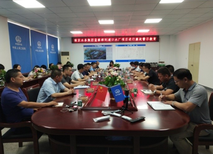 ☆7月18日,南京工程項目黨支部邀請南京水務集團紀檢干部開展廉政警示教育講座。本次講座作為“清風市政”系列活動之一,經項目黨支部提前邀約,由南京水務集團監察部監督辦主任閻振海進行講授,南京水務集團