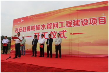 9月29日上午,公司中標的宜昌市遠安縣縣城輸水管網工程在管線的起點舉行了開工儀式。遠安縣縣委副書記、縣長蘇海濤,縣委常委、副書記張俊,縣委常委、常務副縣長肖鵬飛,縣政協副主席、工程建設副指揮長梅昌許,公司總經理鄧永馳,以及遠安縣縣直相關單位,工程監理、工程設計等...