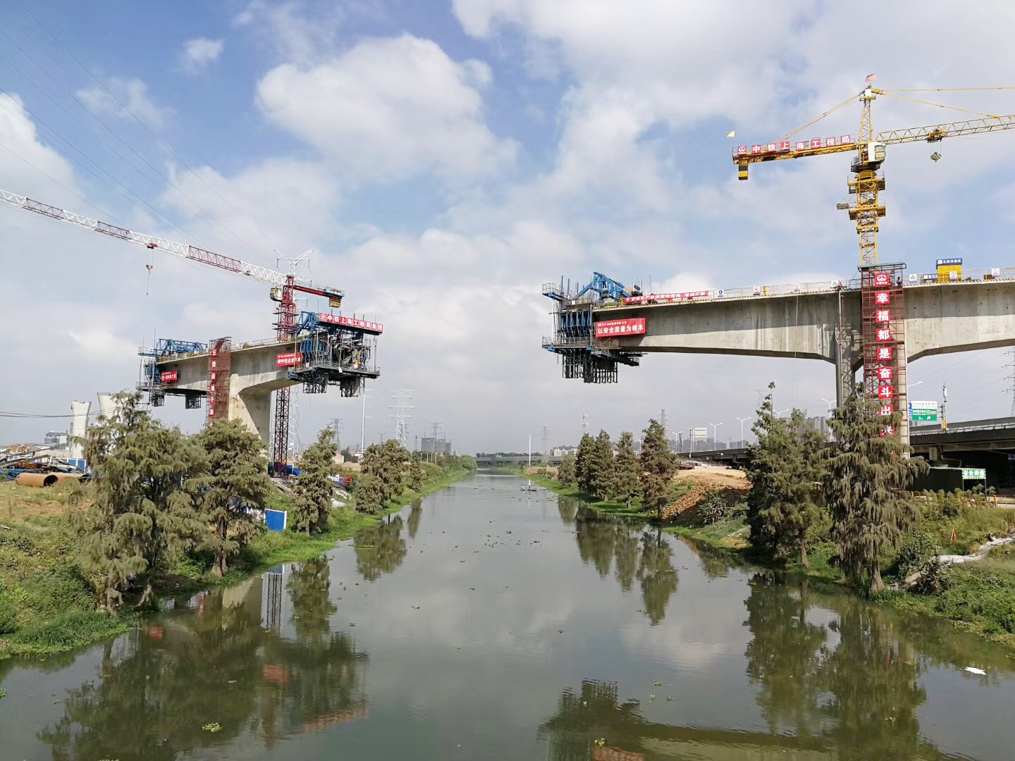 作為備受武漢百姓關(guān)注的工程,該標段面臨著管線改遷難度大、地質(zhì)條件差、掛籃難度高的難題。針對管線遷難題,項目部通過組織對管線進行詳細調(diào)查,制定了管線遷改方案,協(xié)助業(yè)主推動管線遷改,還針對110kv和220kv架空高壓走廊交叉和并行施工的情況,制定了高壓走廊安全防護方案,組織專業(yè)人員進行防護設施安裝,安排專人值守進行重點防控,有效推進管線改遷。由于該地區(qū)是巖溶地質(zhì),項目部采用“一樁一鉆”辦法實現(xiàn)樁位勘察全覆蓋,編制了巖溶專項施工方案,組織有區(qū)域內(nèi)巖溶處理經(jīng)驗豐富的協(xié)作隊伍進行施工,并在過程中加強監(jiān)測,有效化解熔巖地質(zhì)施工難題。針對小半徑曲線掛籃施工,項目部通過建立三維模型進行理論計算分析,采用“應力—應變”雙向控制的方法進行全過程管控,并安排專業(yè)監(jiān)控量測隊伍對懸臂掛籃法連續(xù)梁進行監(jiān)測,成功攻克了曲線掛籃施工難題。