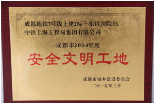 東區醫院站是成都地鐵7號線最早開工建設的站點之一。開工以來,成都地鐵7號線2標項目部精心組織、協調有力,積極化解各種風險,克服重重困難,較好地完成了安全、質量、文明施工等工程建設目標,比同期開工的其他車站提前半年封頂。東區醫院站施工過程中,項目部曾先后榮獲中鐵城投公司2013年三、四季度勞動競賽二等獎、2014年上半年勞動競賽一等獎。項目黨工委榮獲2013~2014年度中鐵城投公司優秀基層黨組織等稱號。